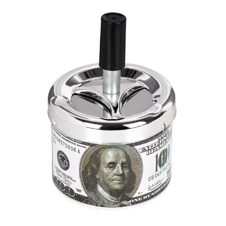 Пепельница нажимная хромированная "100 долларов" 70мм